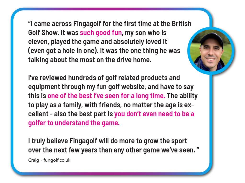 Fingagolf fully funded on Kickstarter in August 2024 and fulfilled in April 2025. To keep informed about the growth of the game, events and special offers sign up to the mailing list, join the Fingagolf community today and bring the world of golf to your living room.
