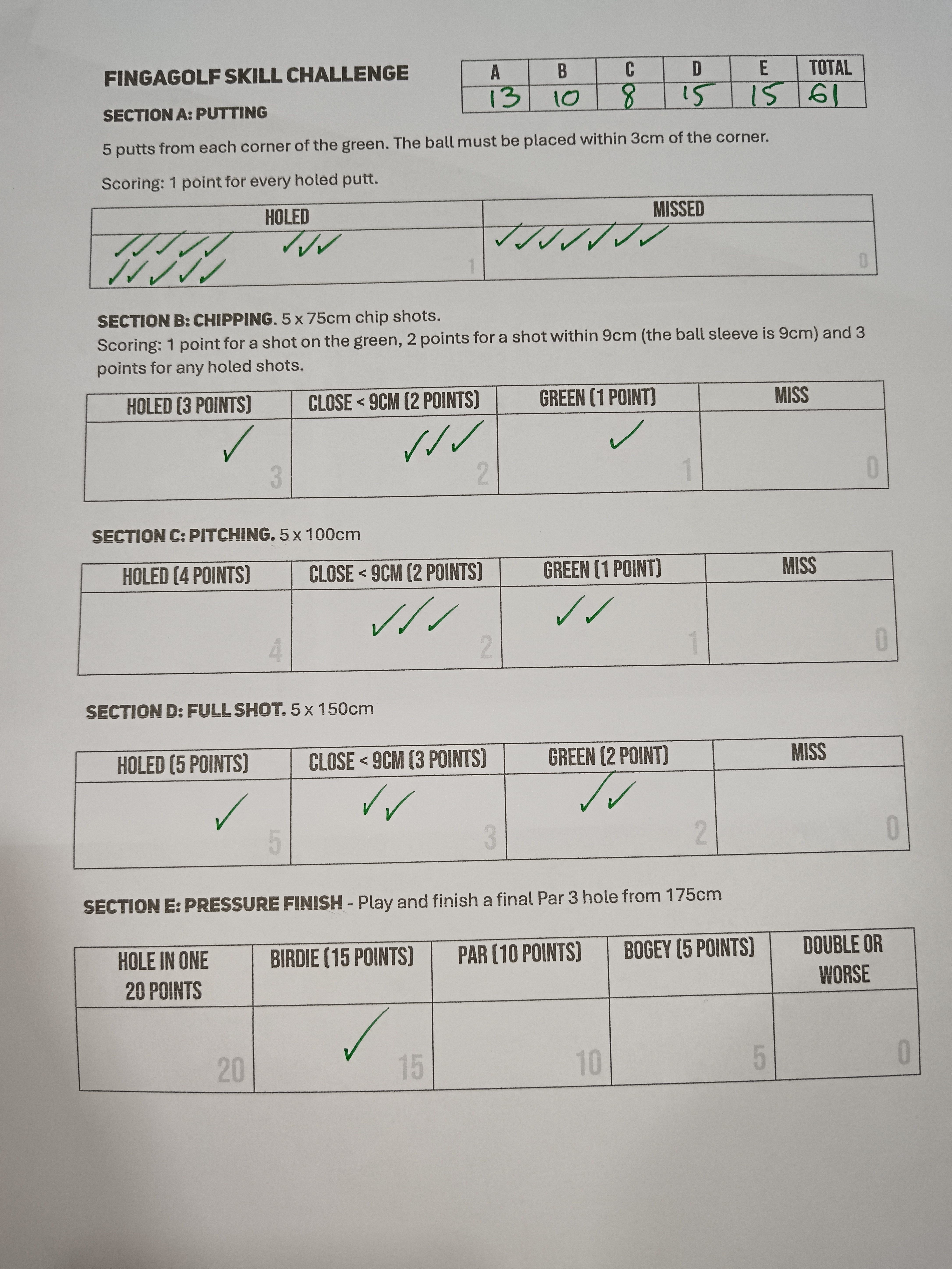 61 points felt like a good score (except the putting) technically it’s out of 100 but I think anything close to 70 would be very impressive.
